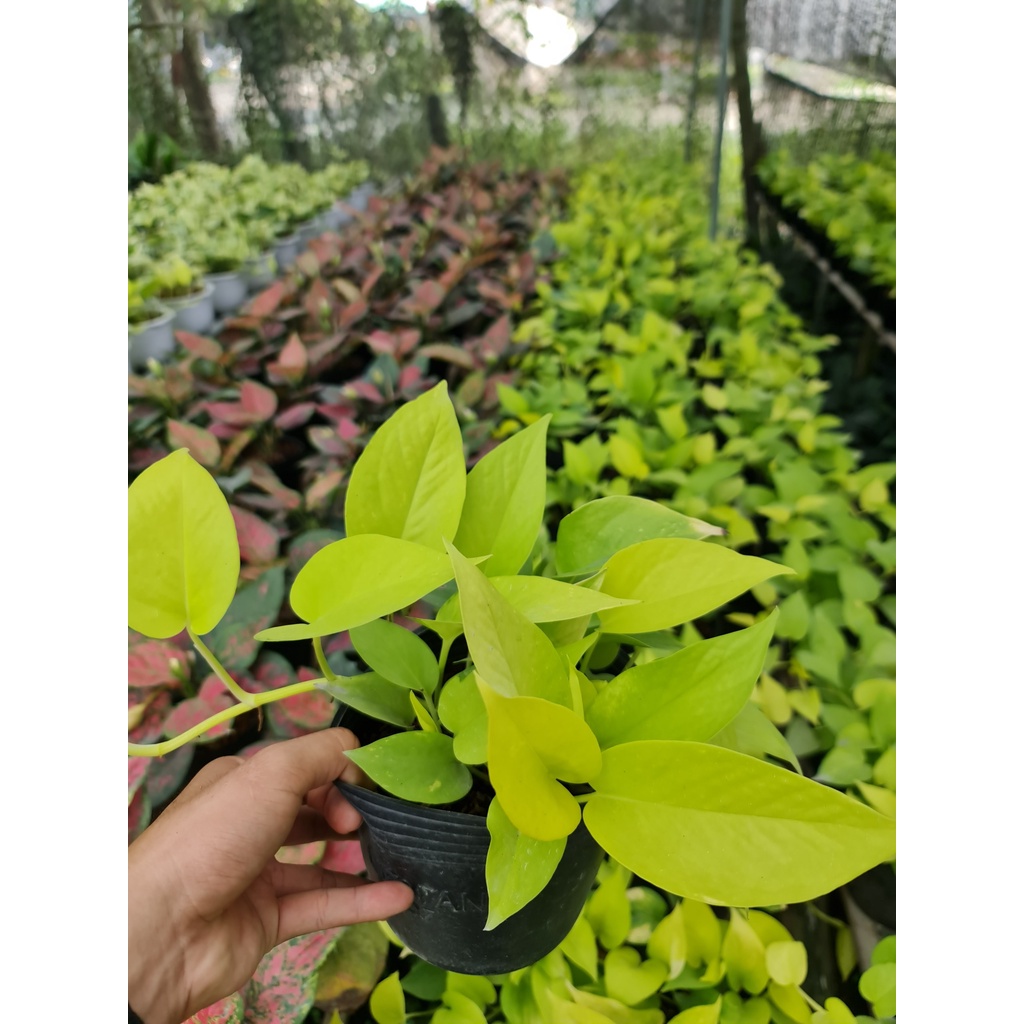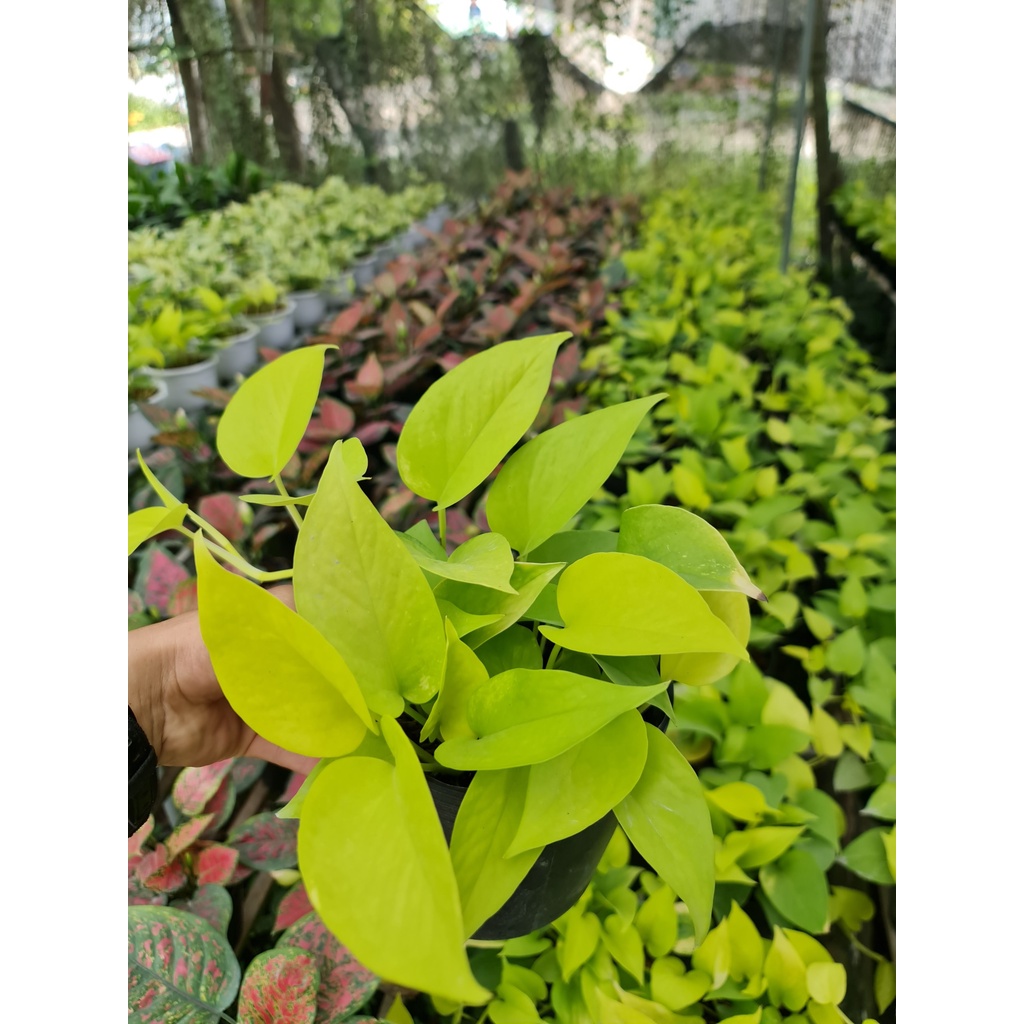 CÂY TRẦU BÀ LÁ VÀNG THÁI• Cây trầu bà lá vàng là một dạng của cây trầu bà ta, thuộc họ ráy (Araceae), tên khoa học Epipremnum Aureum ( neon pothos).