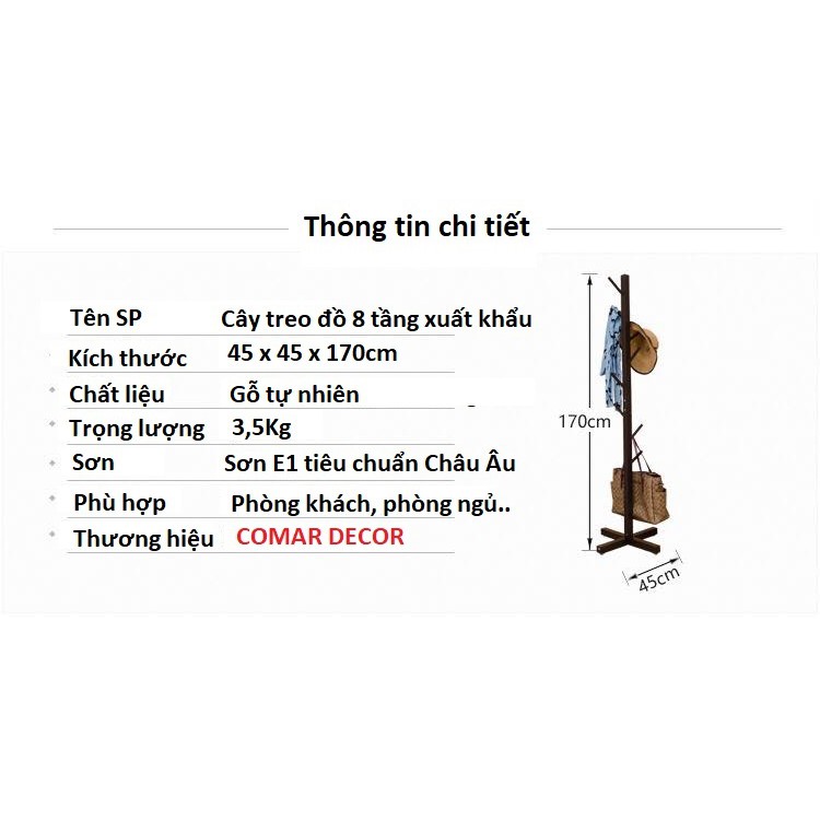CÂY TREO ĐỒ ĐỨNG XUẤT KHẨU CAO 170CM GỖ TỰ NHIÊN SƠN E1 TIÊU CHUẨN CHÂU ÂU.