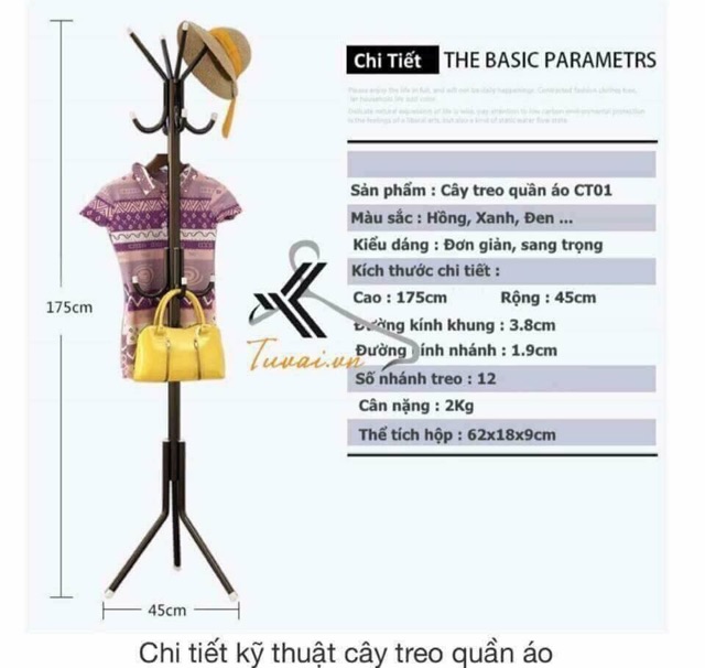 CÂY TREO QUẦN ÁO 12 NHÁNH📌Cây treo quần áo có kích thước tiêu chuẩn rộng 45cm và cao 175cm cùng 12 nhánh treo. 📌Đường kính khung 3.8cm mang lại cảm giác chắc chắn mà vẫn tiện lợi khi di chuyển.
