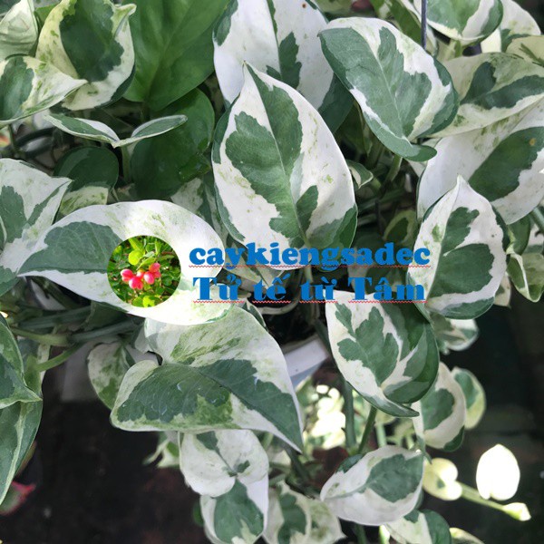 Trầu bà lá cẩm thạch với những chiếc lá hình trái tim với 2 màu tạo một vẻ đẹp lạ mắt. Cây rất được các quán cà phê, văn phòng lựa chọn để trang trí.