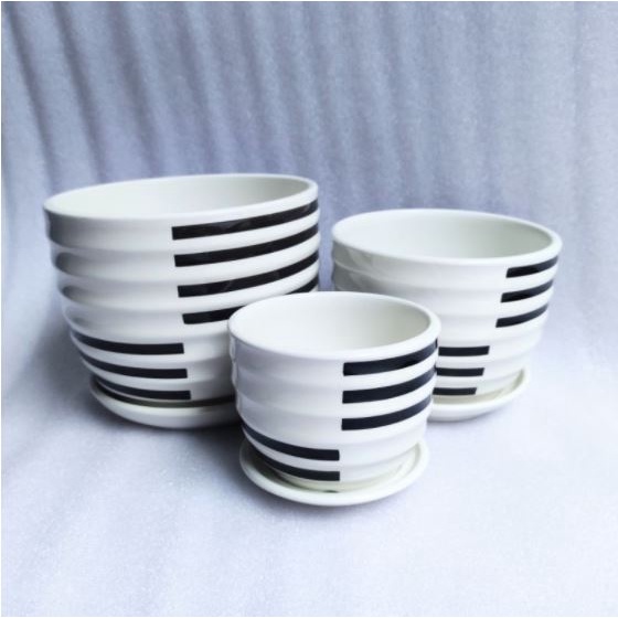 - 1 chậu đa giác thấp trắng