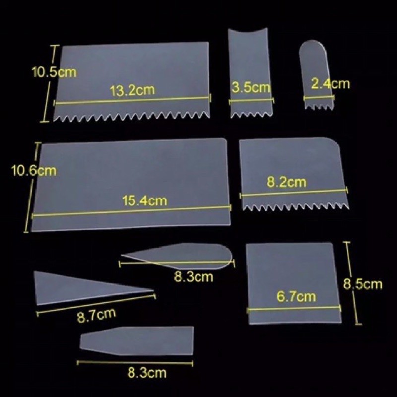 Chất liệu : nhựa dẻo trong suốtBộ gồm 9 món ( như hình)