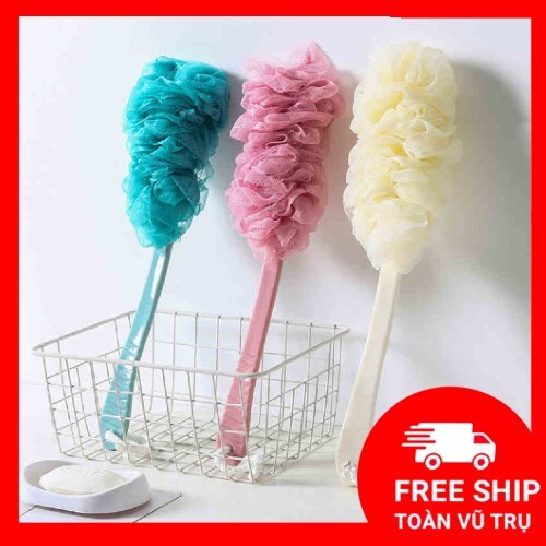 Cây chà lưng cọ kèm bông tắm có tay cầm dài lưới mềm mại massage sạch mụn trắng da vệ sinh cơ thể màu xanh hồng