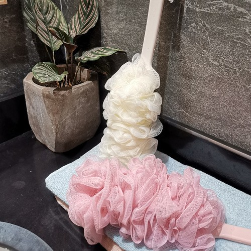 Nhà Cửa & Đời Sống > Đồ dùng phòng tắm > Phụ kiện nhà tắm, nhà vệ sinh || Cây chà lưng cọ kèm bông tắm có tay cầm dài lưới mềm mại massage sạch mụn trắng da vệ sinh cơ thể màu xanh hồngCòn hàng