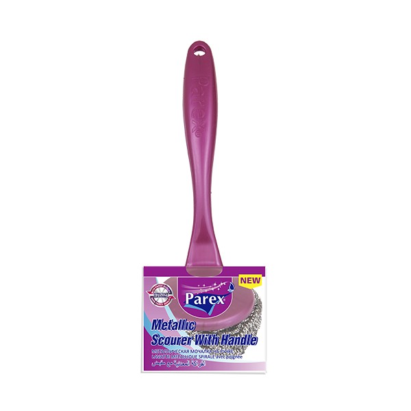 Cây chà rửa nồi chảo Parex cán dài đầu cọ rửa bằng búi cước thép không gỉ