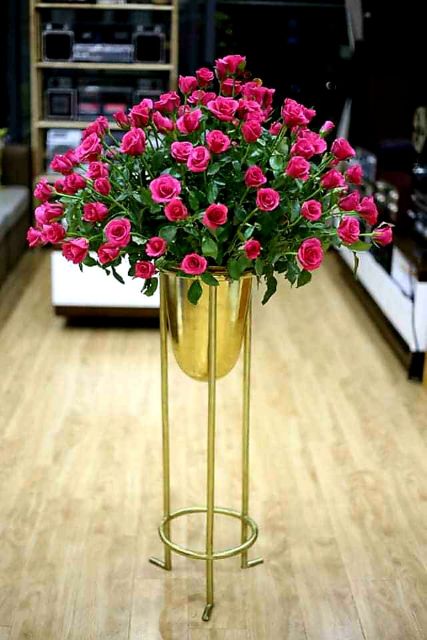 Sản phẩm được làm thủ công .Phần chậu hoa được gò thủ công với những viết vã hoa của búa .