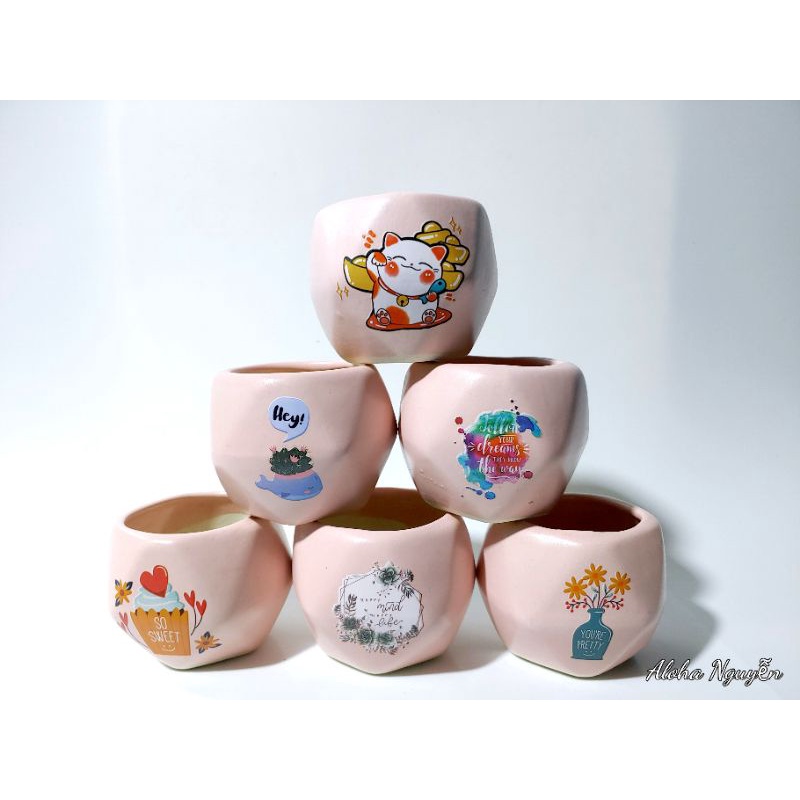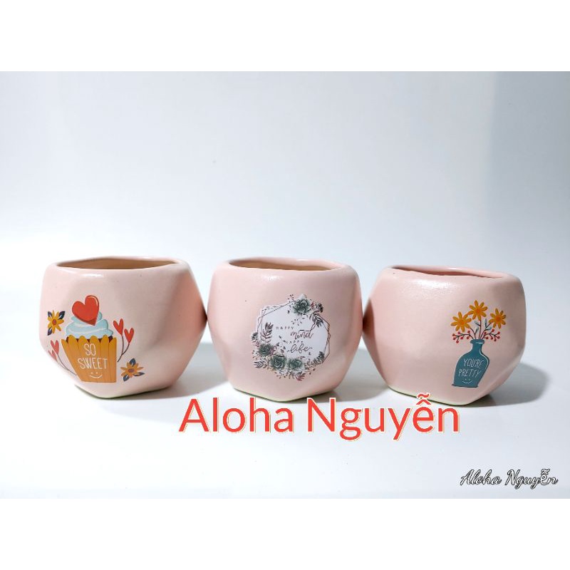 chậu kim cương decal màu hồng trồng cây .sen đá .xương rồng .bao bể