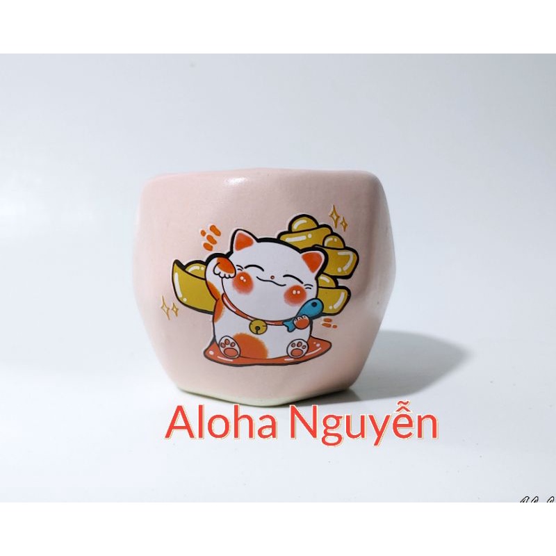 - Chậu men, in hình xinh xắn. Mang lại cảm giác sinh động và sang trọng.