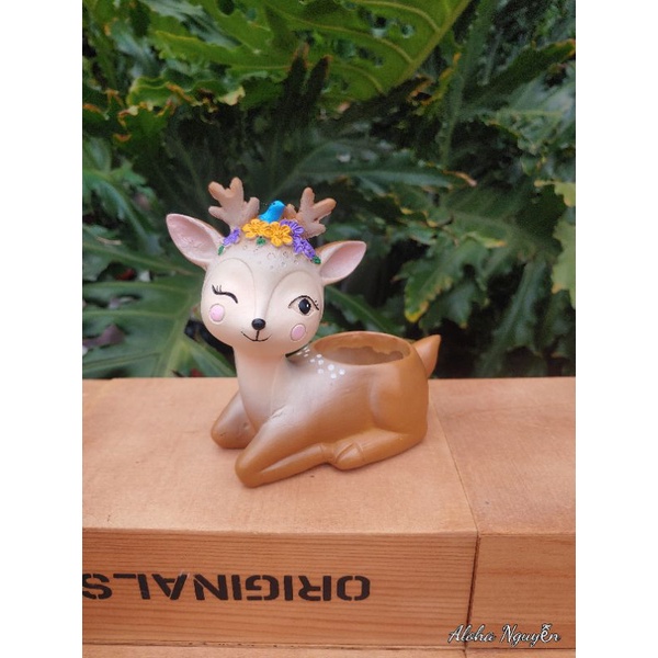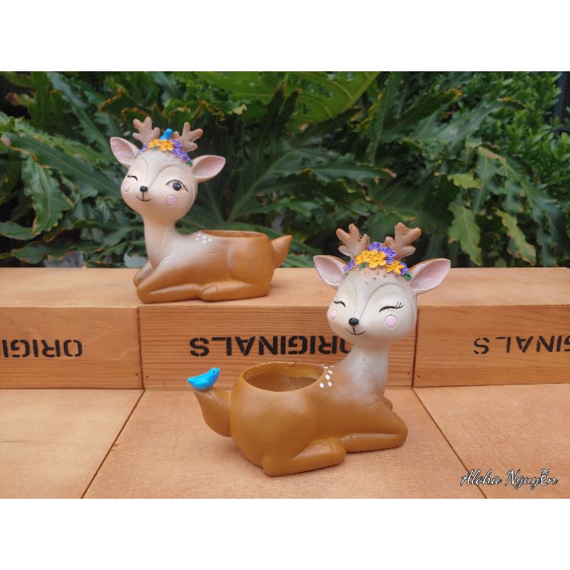 chậu nai trồng cây cute, hàng bao bể .tặng kèm 1 nai con mini.