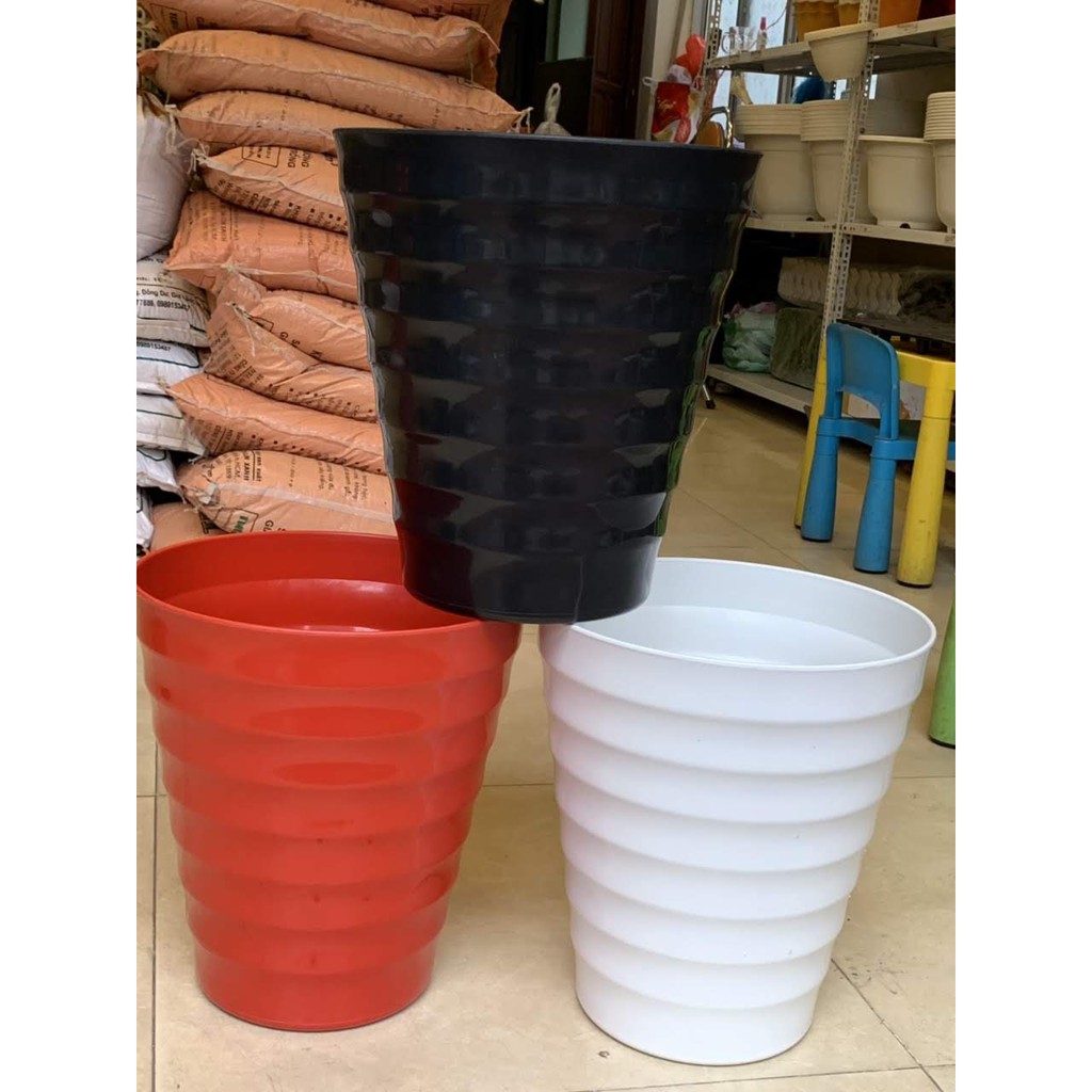 sản phẩm chậu nhựa kèm đĩa đựng nước rất tiện lợi.....có 3 màu đen đỏ trắng siêu đẹp kèm đĩa