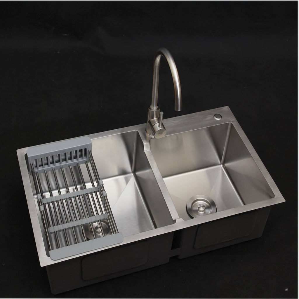 Chậu rửa bát Inox 100%2 hố lệch.Chất liệu sản phẩm inox 100% thủ công