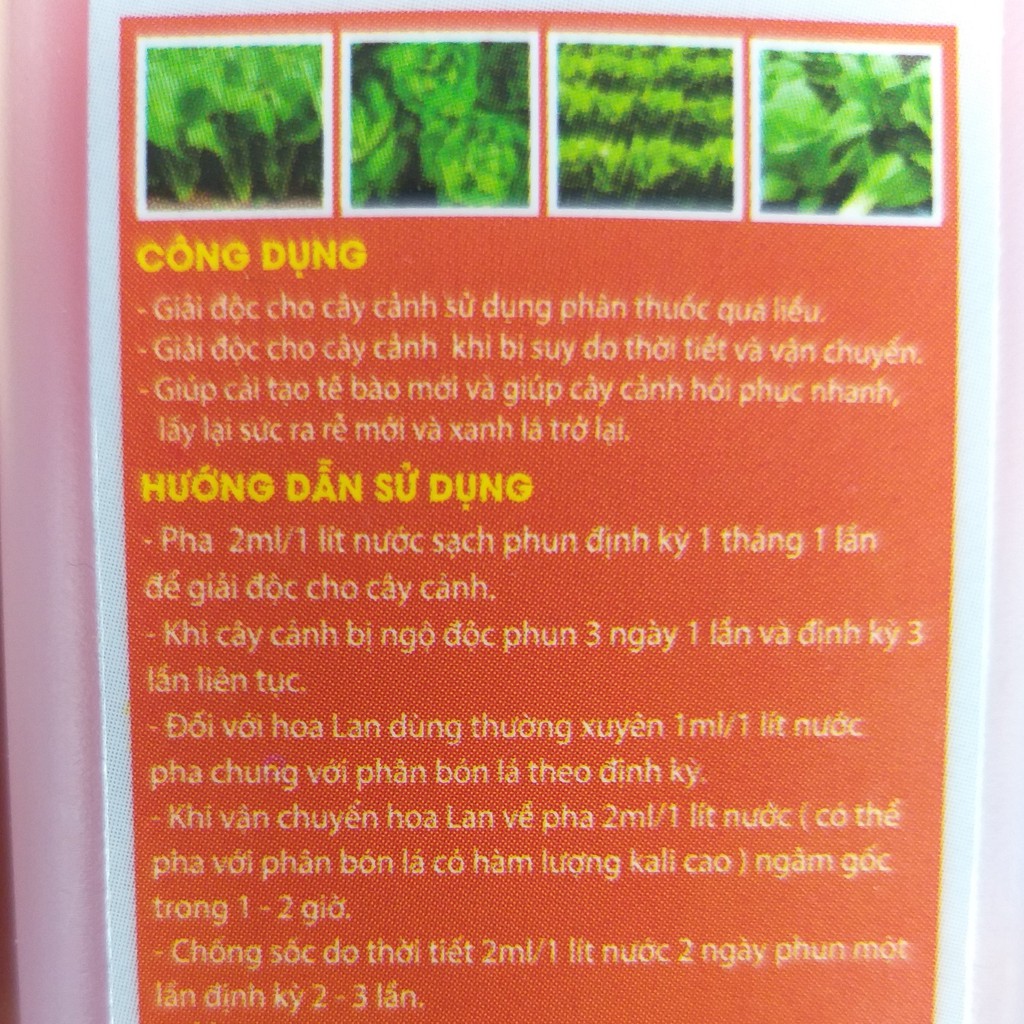 - pha 2ml/1 lít nước sạch phun định kỳ 1 tháng 1 lần để giải độc cho cây cảnh