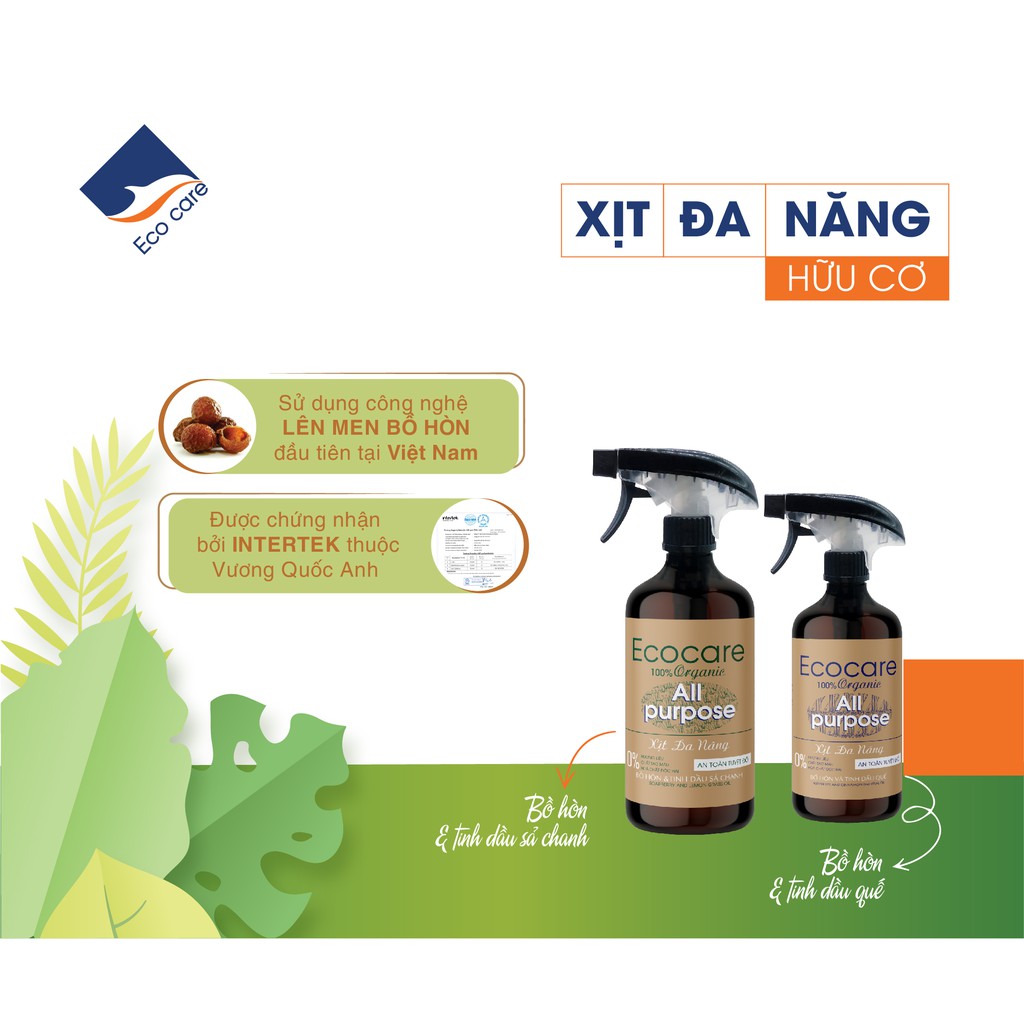 - Ngoài ra sản phẩm xịt đa năng hữu cơ sinh học organic Ecocare, tuyệt đối thân thiện với môi trường, an toàn cho người sử dụng.
