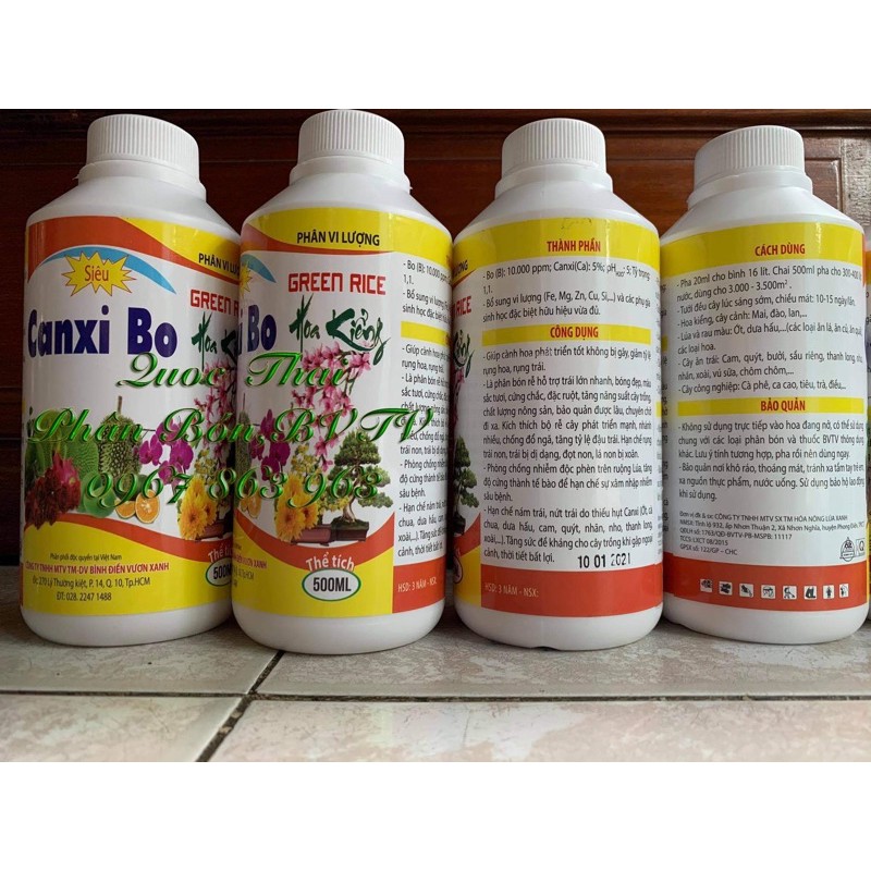 🌞Phân Bón Lá Canxi Bo Giúp Giữ Bộ Nụ, Hạn Chế Rụng Nụ, Lớn Trái Nhanh, Chống Nứt TráiPhân vi lượng CANXI BO 500ml là phân bón rễ và lá hỗ trợ trái lớn nhanh, bóng đẹp, màu sắc tươi cứng chắc, ruột đặc, tăng năng suất, bảo quản được lâu