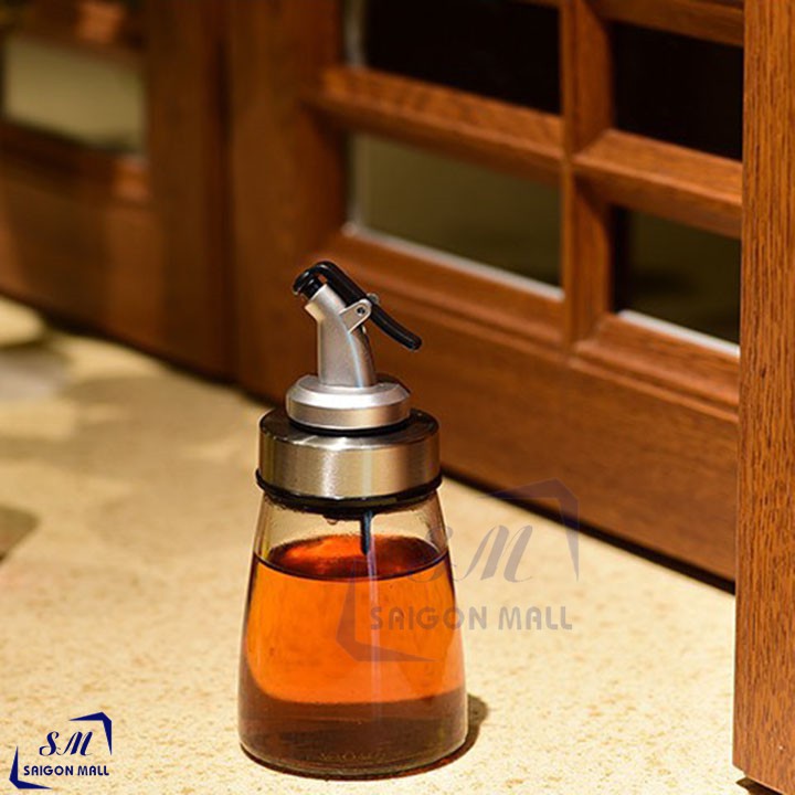 Chai đựng dầu ăn thủy tinh cao cấp 180 ml dáng LÙN có vòi chiết rót