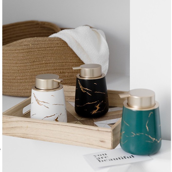 Nhà cửa & Đời sống > Đồ dùng phòng tắm > Khác || Chai đựng dầu gội đầu, sữa tắm 400ml gốm sứ vân đá sang trọngCòn hàng