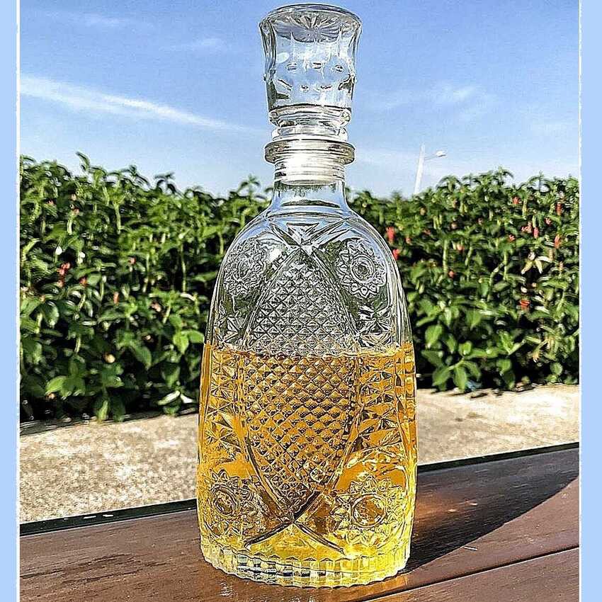 Giới thiệu Chai đựng rượu thủy tinh 1 lít mẫu OVAL họa tiết Vảy – Vỏ chai rượu 1000ml siêu trong – Chưng bàn ăn vô đối (mẫu A12)