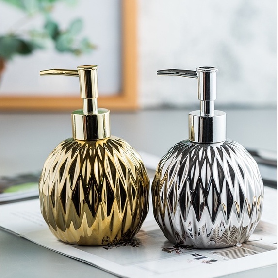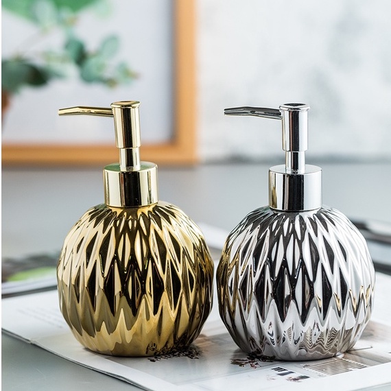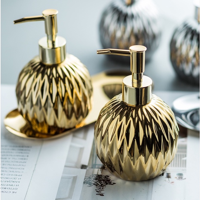 Nhà cửa & Đời sống > Đồ dùng phòng tắm > Kệ đựng xà phòng || Chai Đựng Sữa Tắm Nước Rửa Tay Vòi Nhấn Gốm Sứ Mạ Vàng 400ml OENENCòn hàng