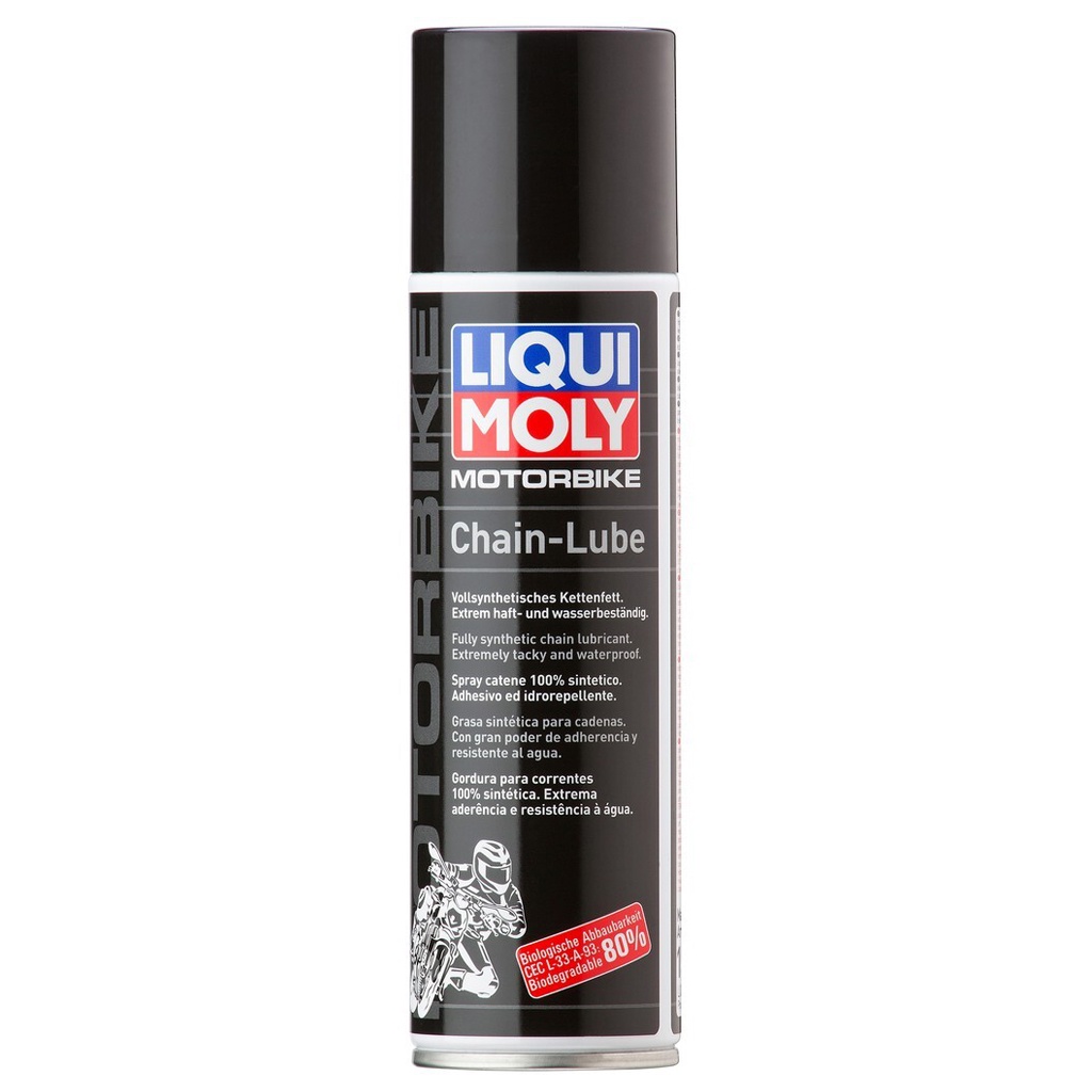 Chai dưỡng sên Liqui Moly Chain Lube 250ml với công dụng tạo màng mỏng bám trên bề mặt dây sên, bôi trơn toàn bộ, độ bám dính cực cao, bôi trơn chống mài mòn dây sên và nhông dĩa, hạn chế bụi bẩn.Đặc tính: