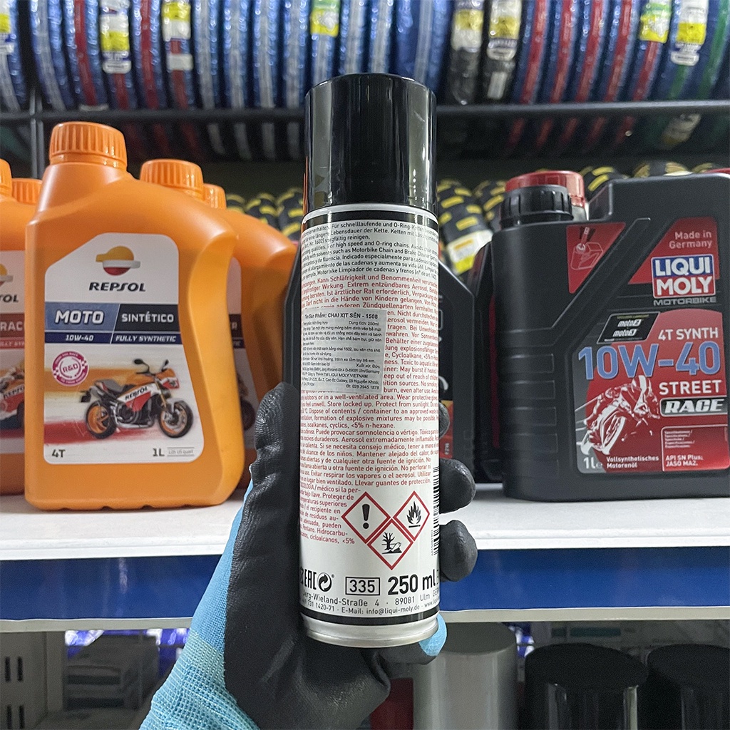 Giới thiệu Chai dưỡng sên Liqui Moly Chain Lube 250ml, Chai xịt sên bảo dưỡng sên xe máy