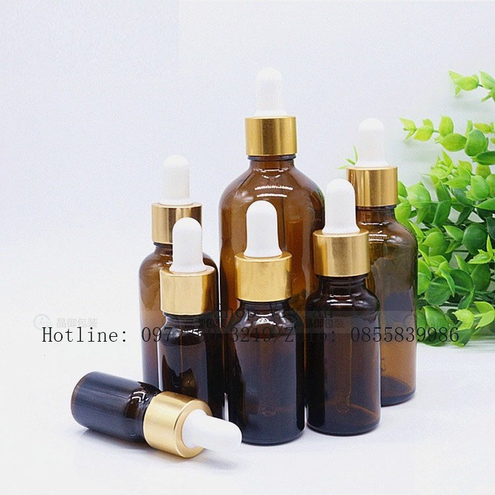 Giới thiệu Chai lọ đựng tinh dầu 100ml nâu, lọ đựng serum, tinh chất nắp bóp nhôm vàng đẹp