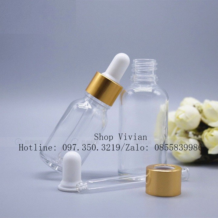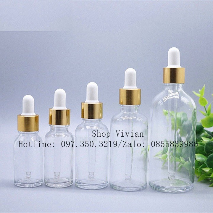 Chai lọ đựng tinh dầu, serum 50ml, lọ thuỷ tinh trong suốt nắp bóp nhôm vàng *** HÀNG CÓ SẴN• Xuất xứ: Trung Quốc