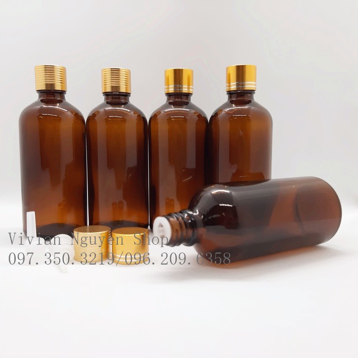 Chai đựng tinh dầu thủy tinh màu nâu100ml , nắp màu nhôm vàng• Xuất xứ: Trung Quốc