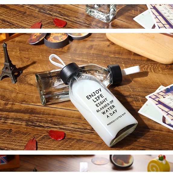 Nhà cửa & Đời sống > Bộ đồ bàn ăn > Bình nước & phụ kiện || Chai lọ thủy tinh dẹp có quai xách cao cấpCòn hàng