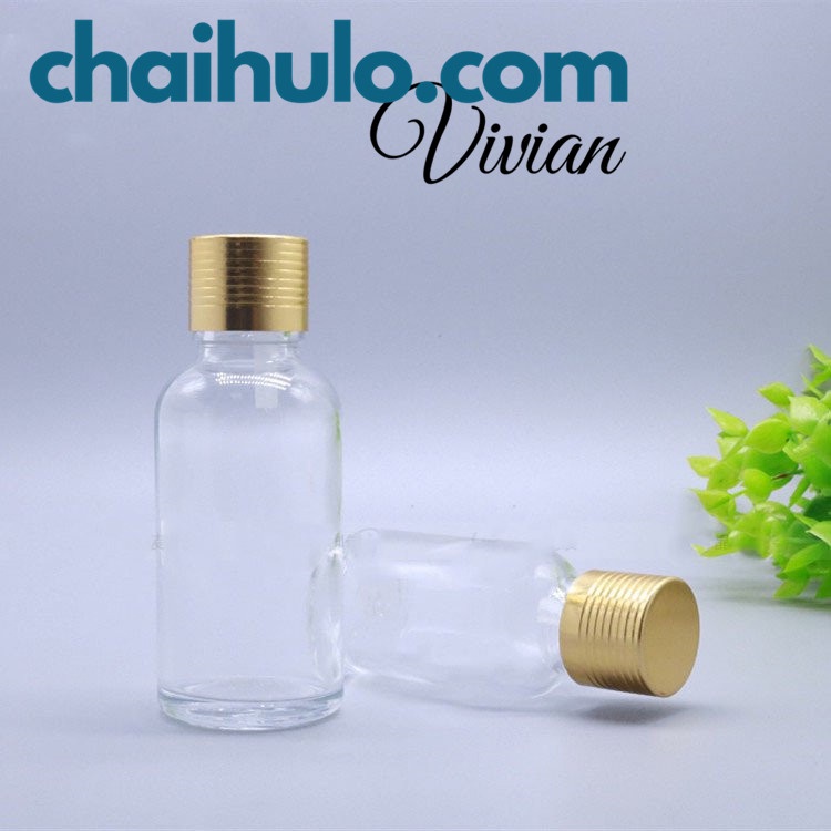 Chai lọ thủy tinh đựng tinh dầu, serum thân trong suốt nắp vặn vàng nhỏ giọt• Xuất xứ: Trung Quốc