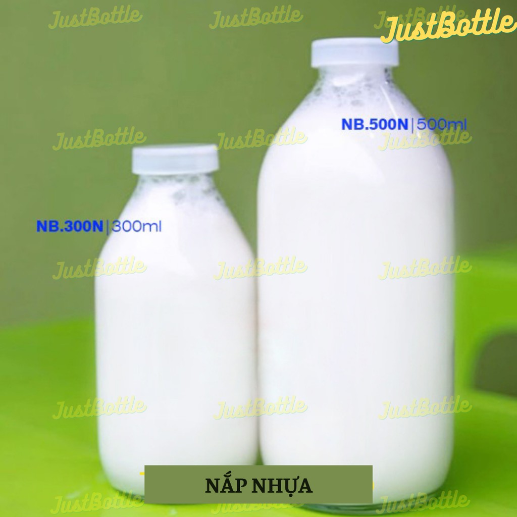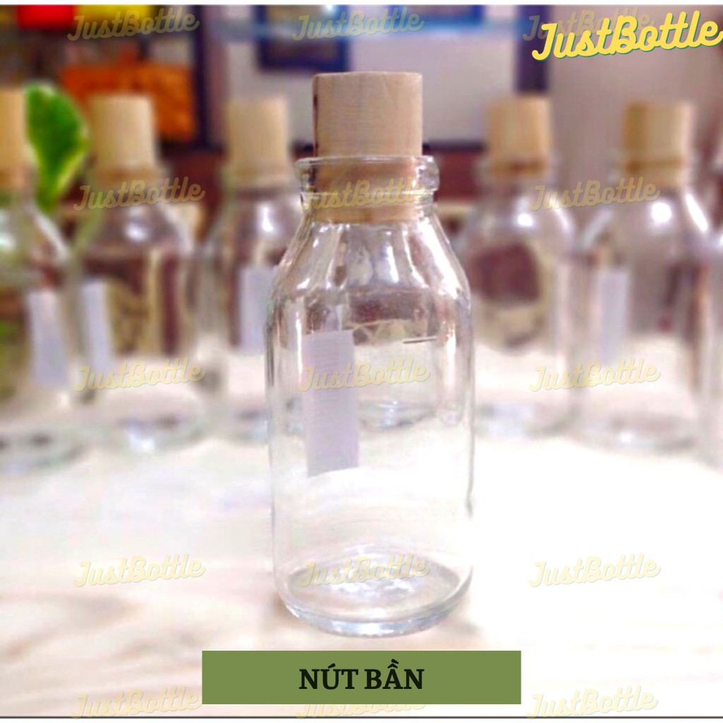 CHAI LỌ THỦY TINH NẮP NHỰA NÚT BẦN GỖ 100ml 300ml 500ml TRÒN TRONG SUỐT đựng nước uống, sữa, nước ép trái cây