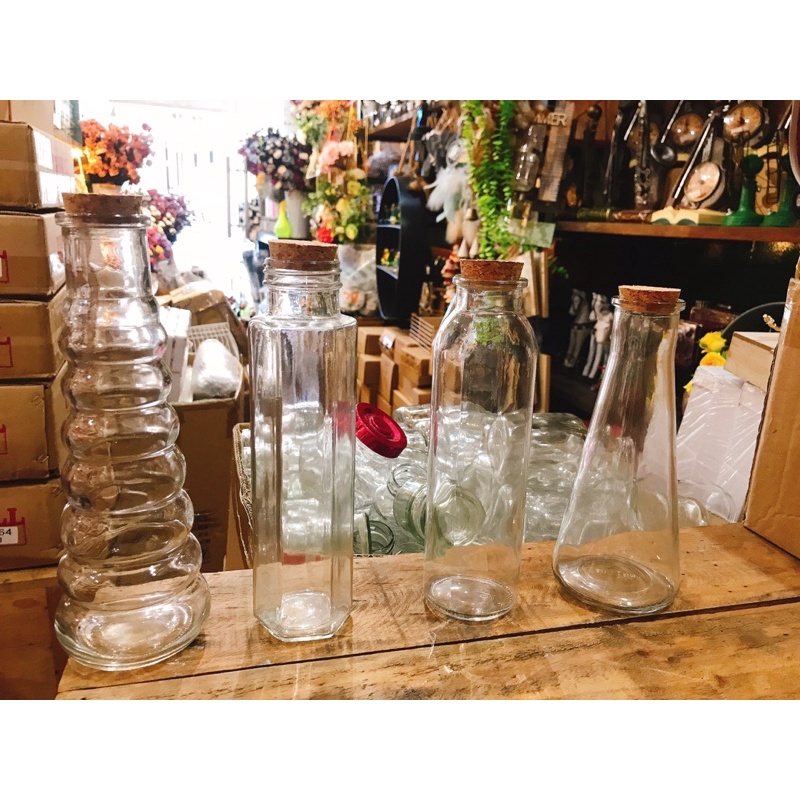 CHAI LỌ THUỶ TINH TRANG TRÍ- Chai lọ thuỷ tinh có nhiều dung tích, dùng để cắm hoa, đựng vật dụng hay đựng cà phê hạt, đựng cà phê bột, hay là dùng đựng nước ép cũng rất xinh xắn.