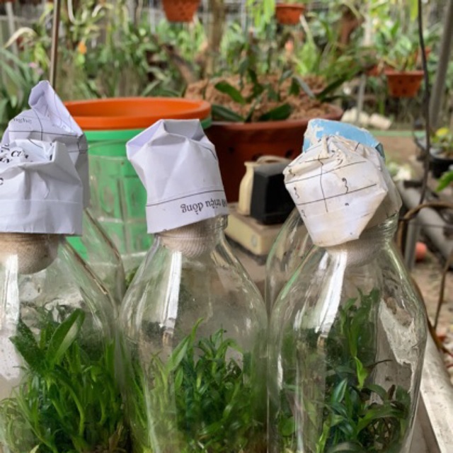 Chai mô phi điệp Giá 150000 đồng/chai, được 10-20 cây, cây cao 1- 3cm. Liên hệ 0936408636. Vườn lan green hua, số 1, đường T, học viện nông nghiệp.Giá YLAY