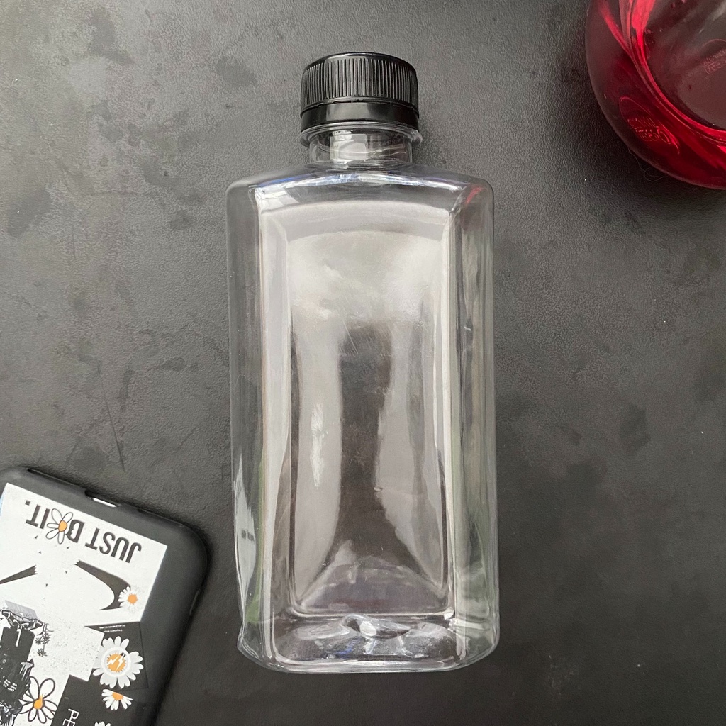 Giới thiệu Chai nhựa 250-500ml đưng trà sữa, nước kèm nắp nhựa hoặc kim loại