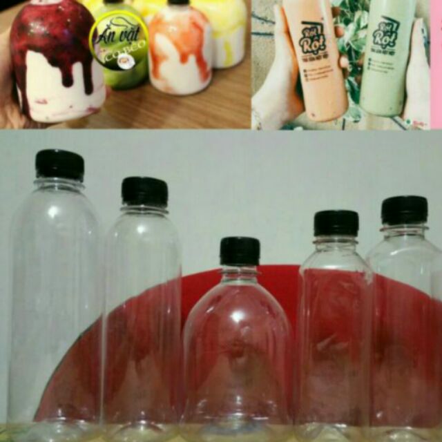 Giới thiệu Chai nhựa 330ml nắp đen - cao tròn - lùn tròn - hình nón / tam giác - trụ vuông ( sẵn )