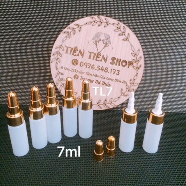 #tientienshop # uytin #chailodungmyphamChai nhựa trắng nhỏ 7ml, nắp vặn mạ xi vàng, dáng nhọn