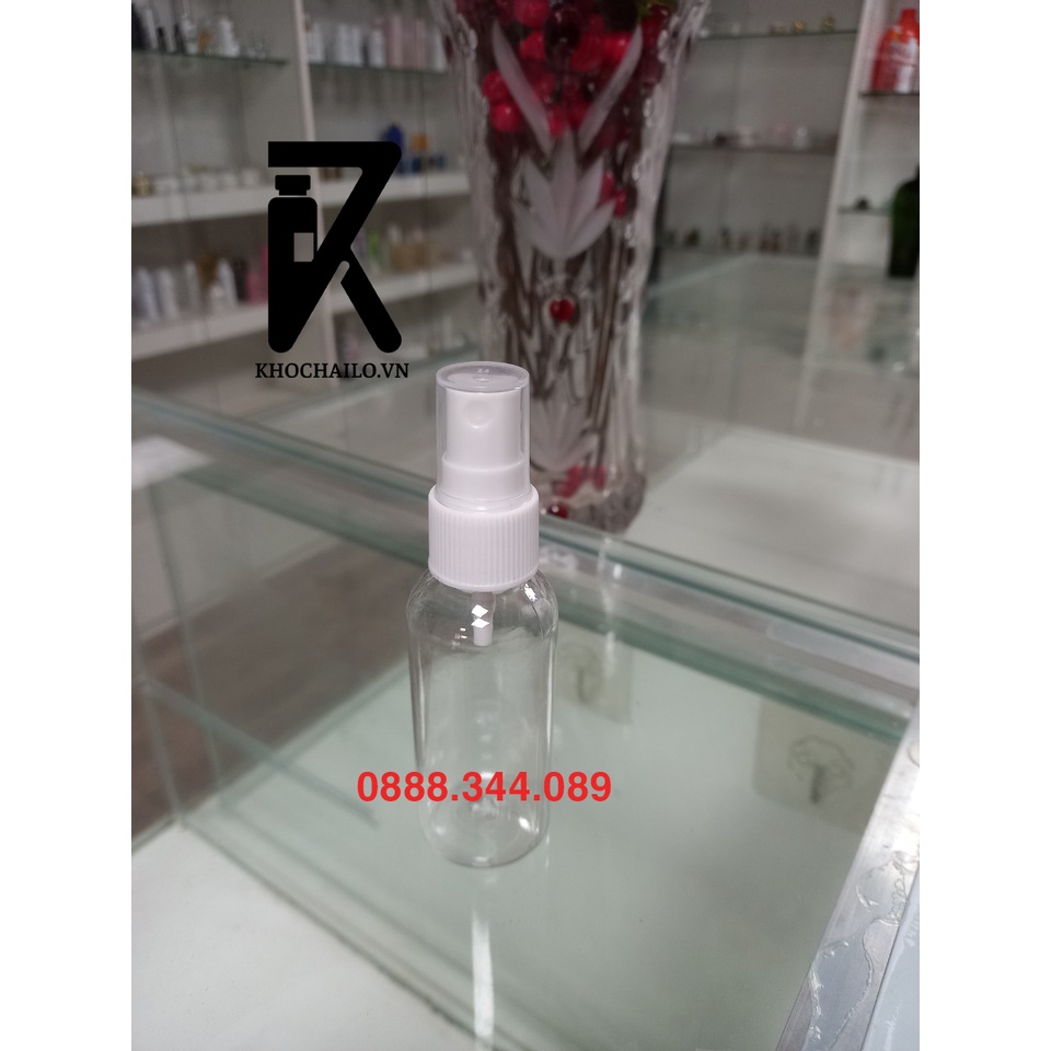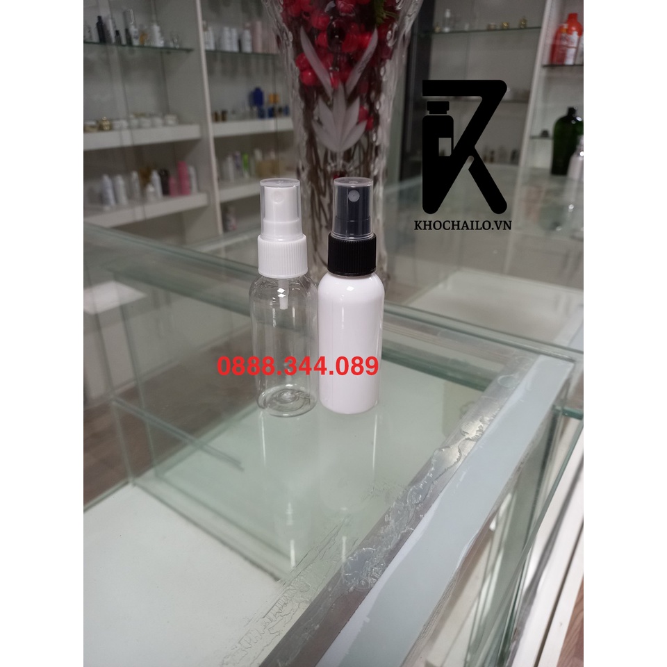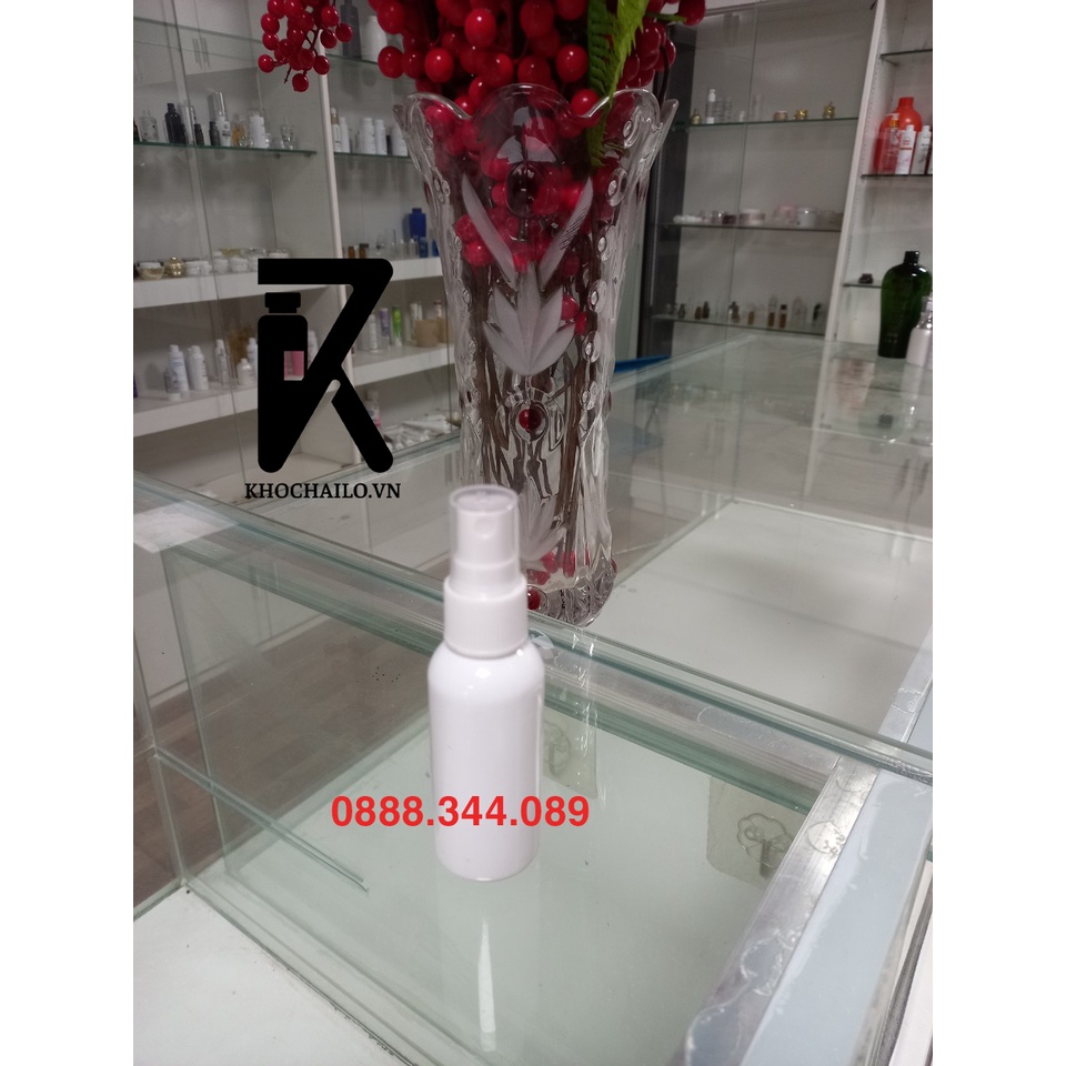 Chai nhựa pet trắng sứ trắng trong vai tròn vòi phun sương trắng,phun sương đen,nắp vặn trắng 50ml
