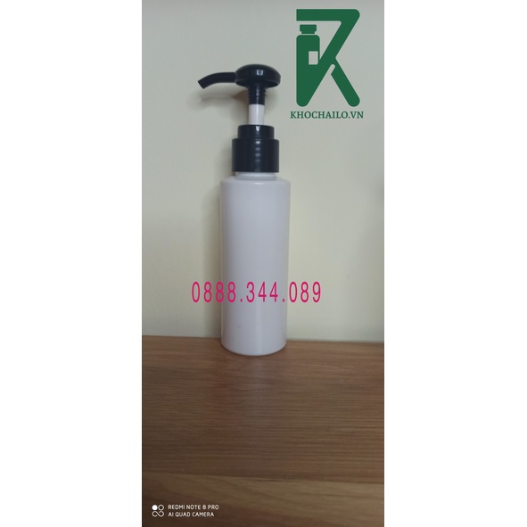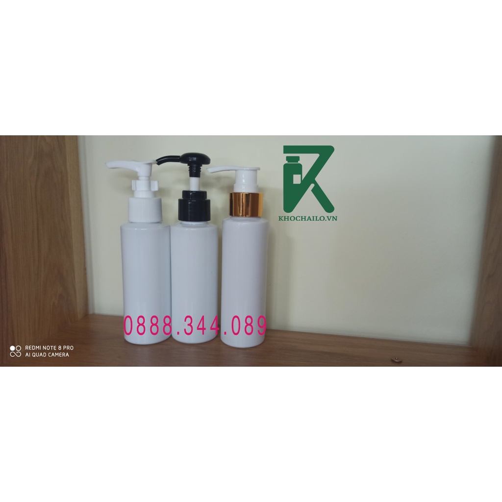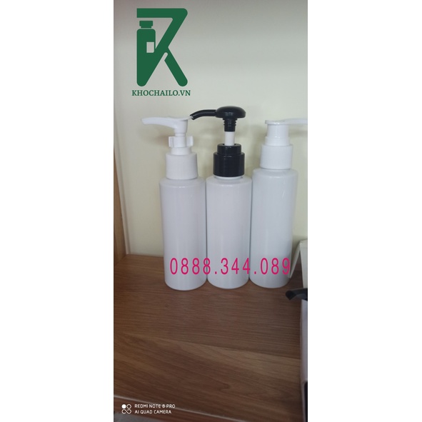Chai nhựa pet trắng sứ vai ngang vòi nhấn dầu gội,sữa tắm,vòi mạ vàng,vòi đen,vòi trắng 100ml