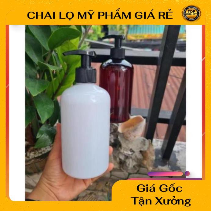 Giới thiệu Chai Chiết Mĩ Phẩm ❤ RẺ VÔ ĐỊCH ❤ Chai nhựa pet vòi nhấn sữa tắm Nâu,Trắng Lùn 500ml , phụ kiện du lịch