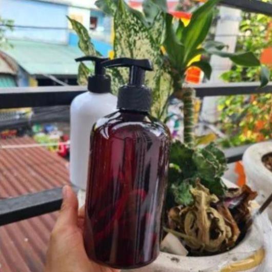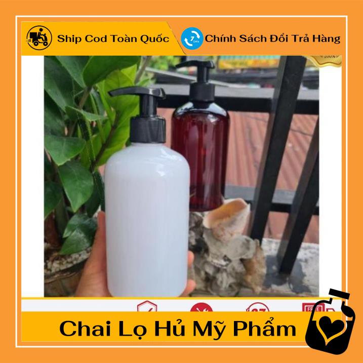 Chai Chiết Mĩ Phẩm ❤ TOP GIÁ RẺ ❤ Chai nhựa pet vòi nhấn sữa tắm Nâu/Trắng Lùn 500ml , phụ kiện du lịch