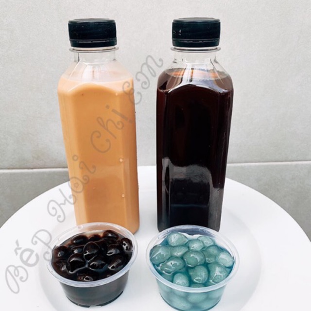 Giới thiệu Chai nhựa trà sữa vuông 330 ml kèm nắp fi 30