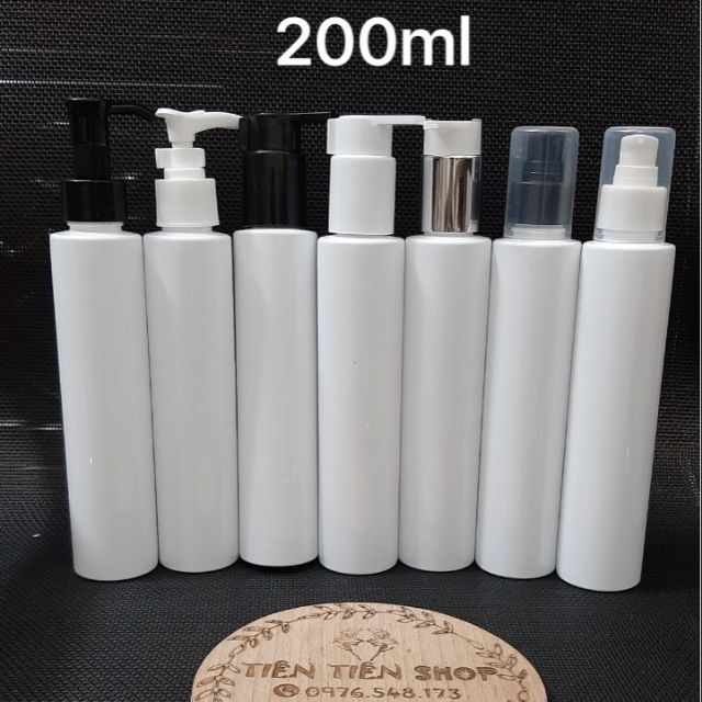 Chai nhựa trắng đục 200ml vai vuông vòi ấn