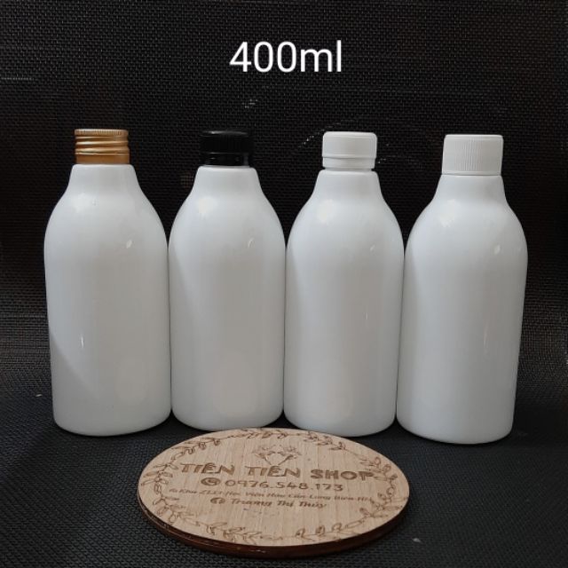 #tientienshop #uytin #chailodungmyphamChai nhựa cứng trắng dáng tròn 400ml nắp vặn nhôm vàng