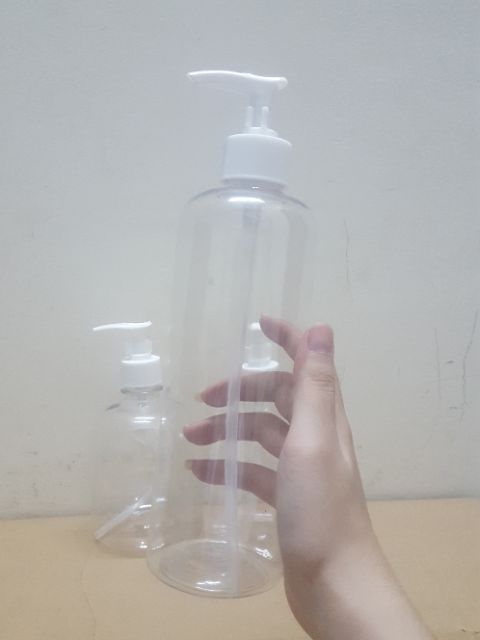 Giới thiệu Chai nhựa trong 500ml vòi nhấn thân cao có nắp bảo vệ