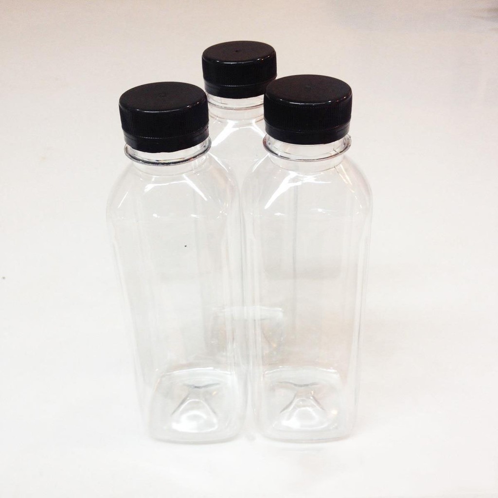 Chai nhựa vuông nắp đen 330ml | Combo 10 chai
