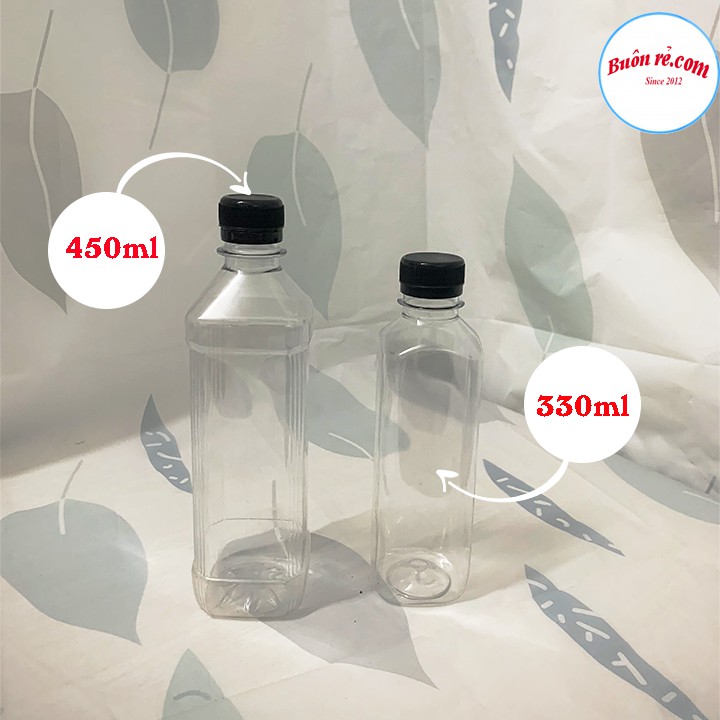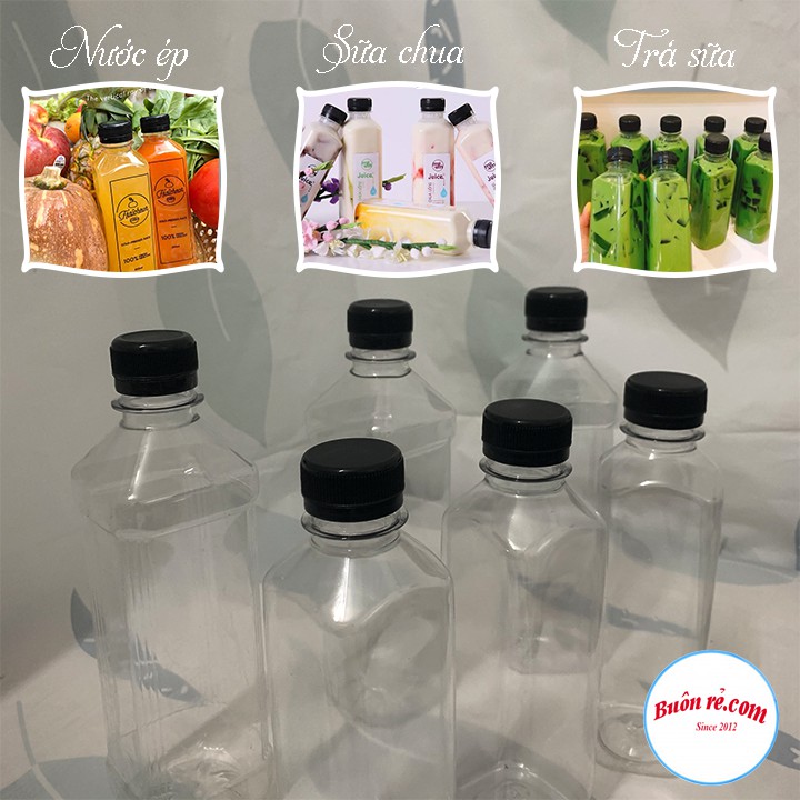 Giới thiệu Chai nhựa vuông nắp đen 330ml, 450ml Việt Nhật –Chai nhựa đựng trà sữa, nước ép an toàn – Buôn Rẻ 01282 – 01282-1