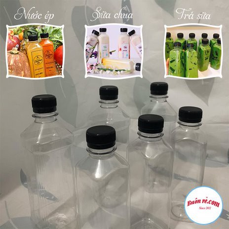 Giới thiệu Chai nhựa vuông nắp đen 330ml, 450ml Việt Nhật - Chai đựng trà sữa, trà thái - Buôn rẻ 01282