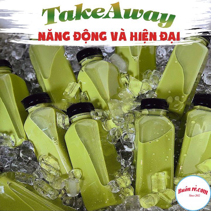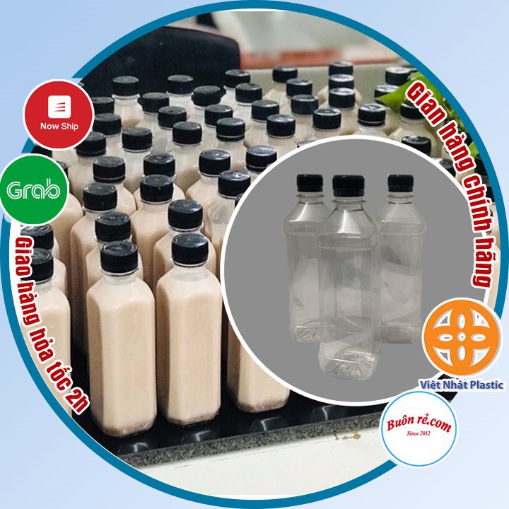 Chai nhựa vuông nắp đen 330ml, 450ml Việt Nhật - Chai đựng trà sữa, trà thái - Buôn rẻ 01282
