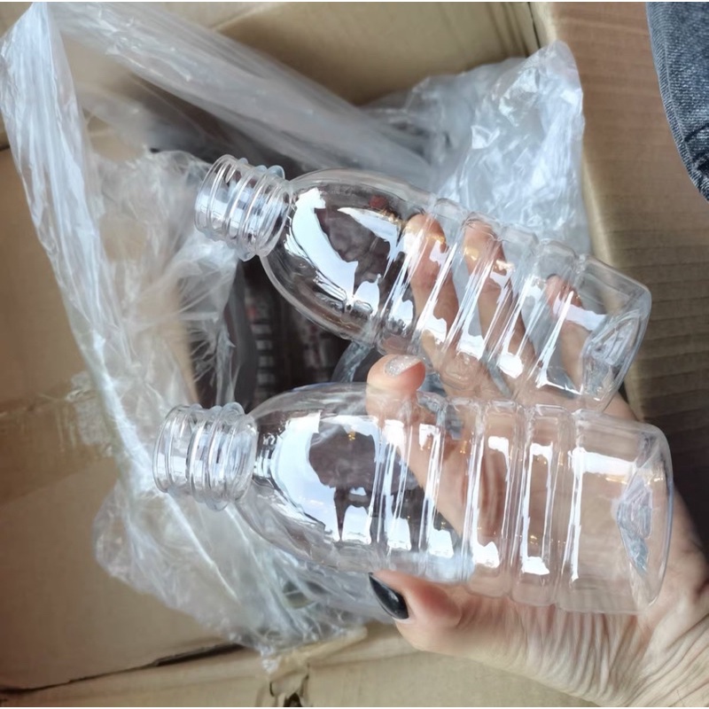 Nhà cửa & Đời sống > Bộ đồ bàn ăn > Bình nước & phụ kiện || Chai Nhựa Vuông-Tròn 350ml Nắp Đen-có ảnh thậtCòn hàng
