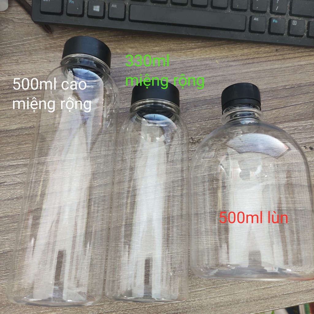 chai nhựa vuông, tròn, bầu 330ml/ 500ml - 1 chai - đựng chè dưỡng nhan, trà sữa