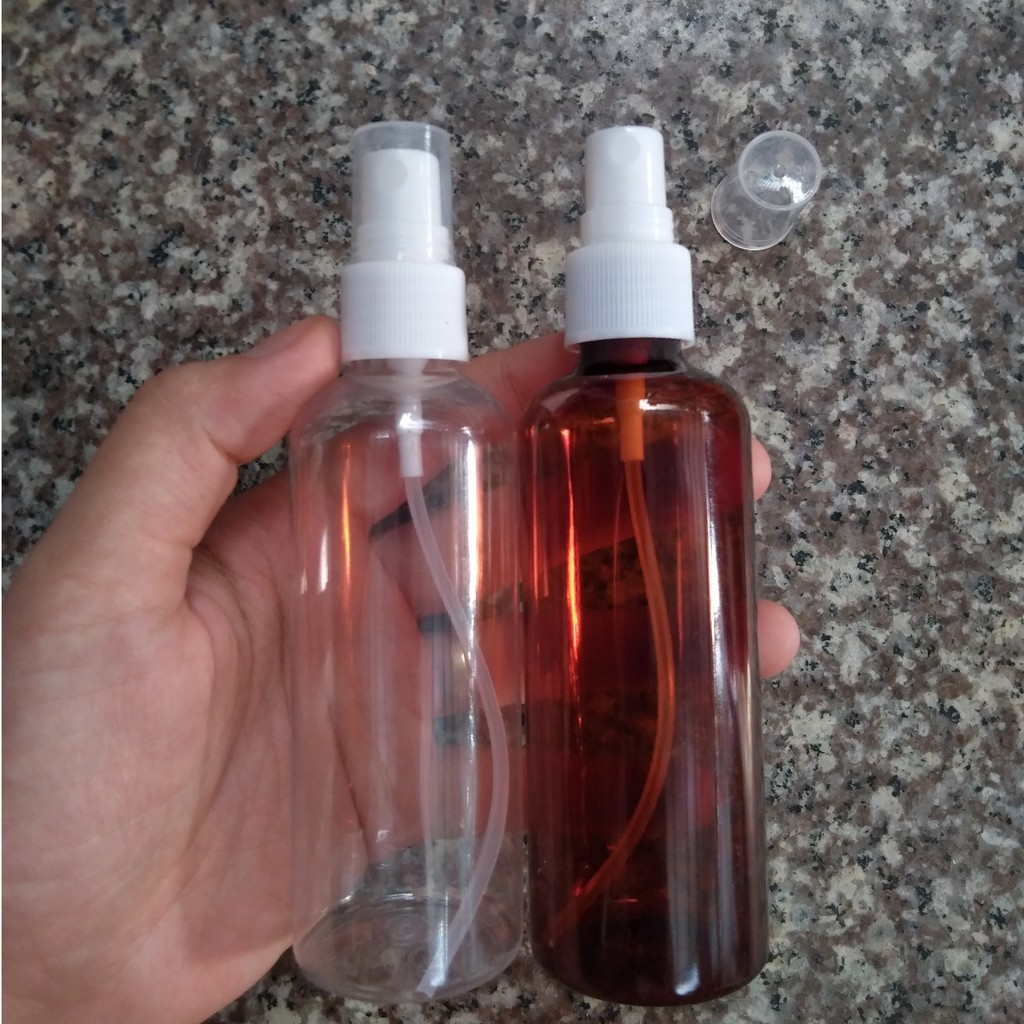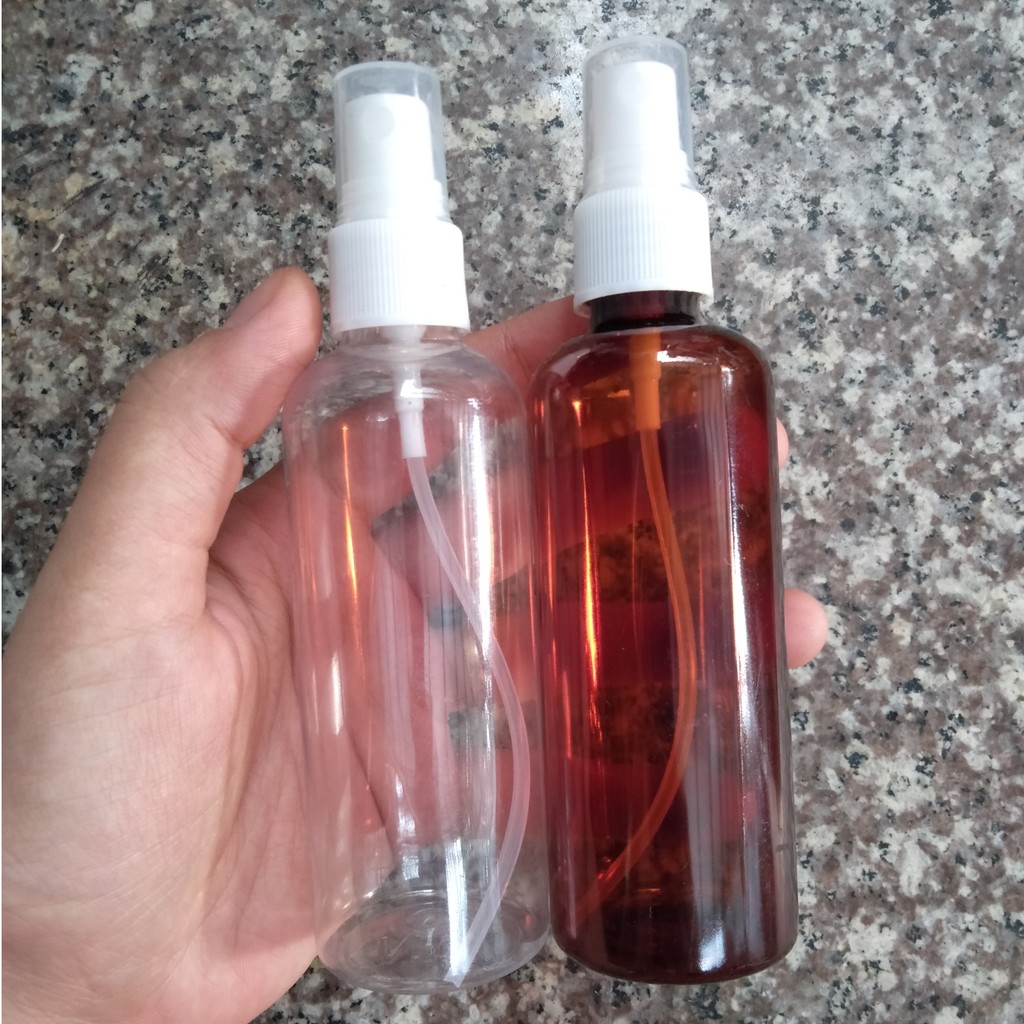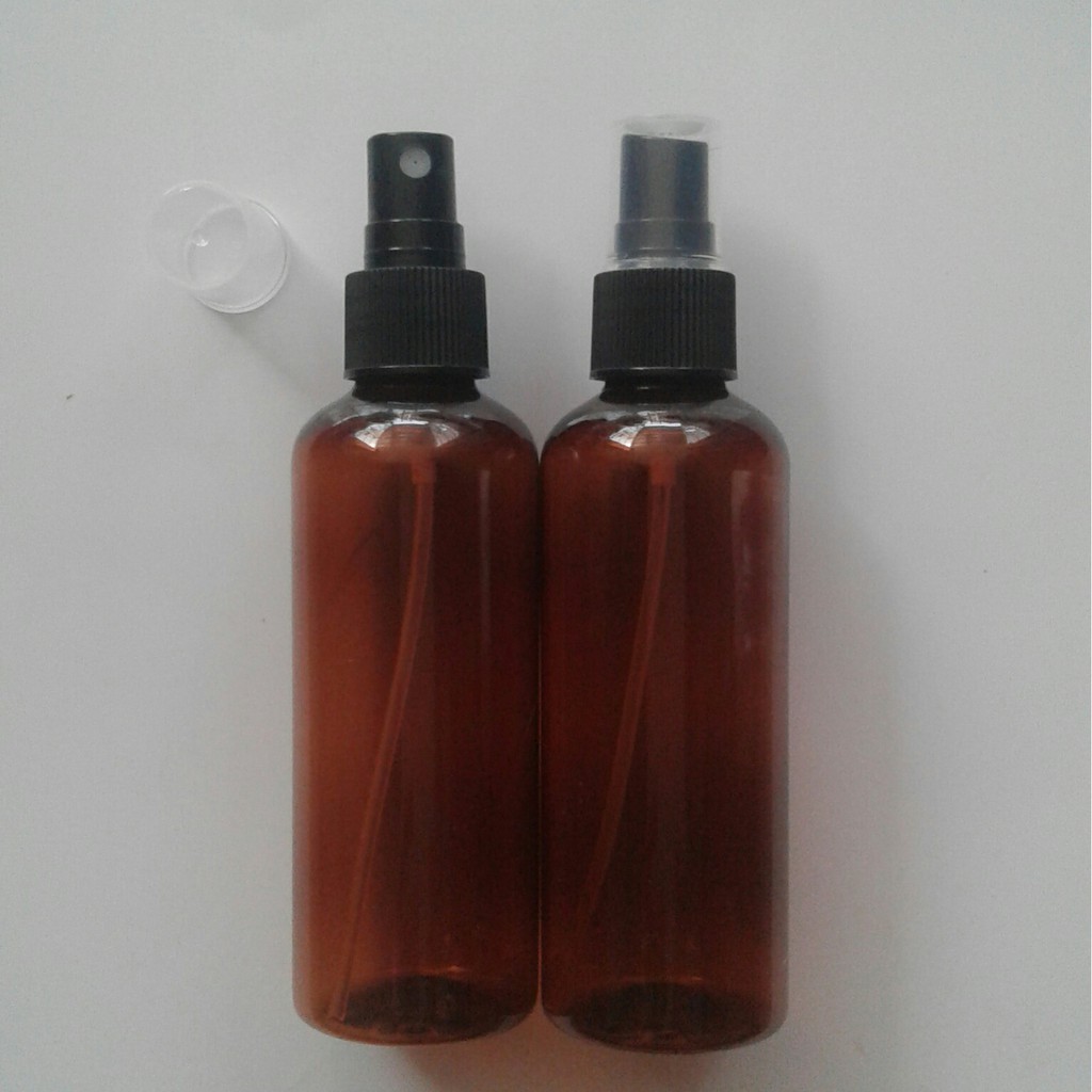 Chai nhựa xịt phun sương dung tích 100mlThân chai nâu cánh gián, nắp phun sương đen, nắp đây trong